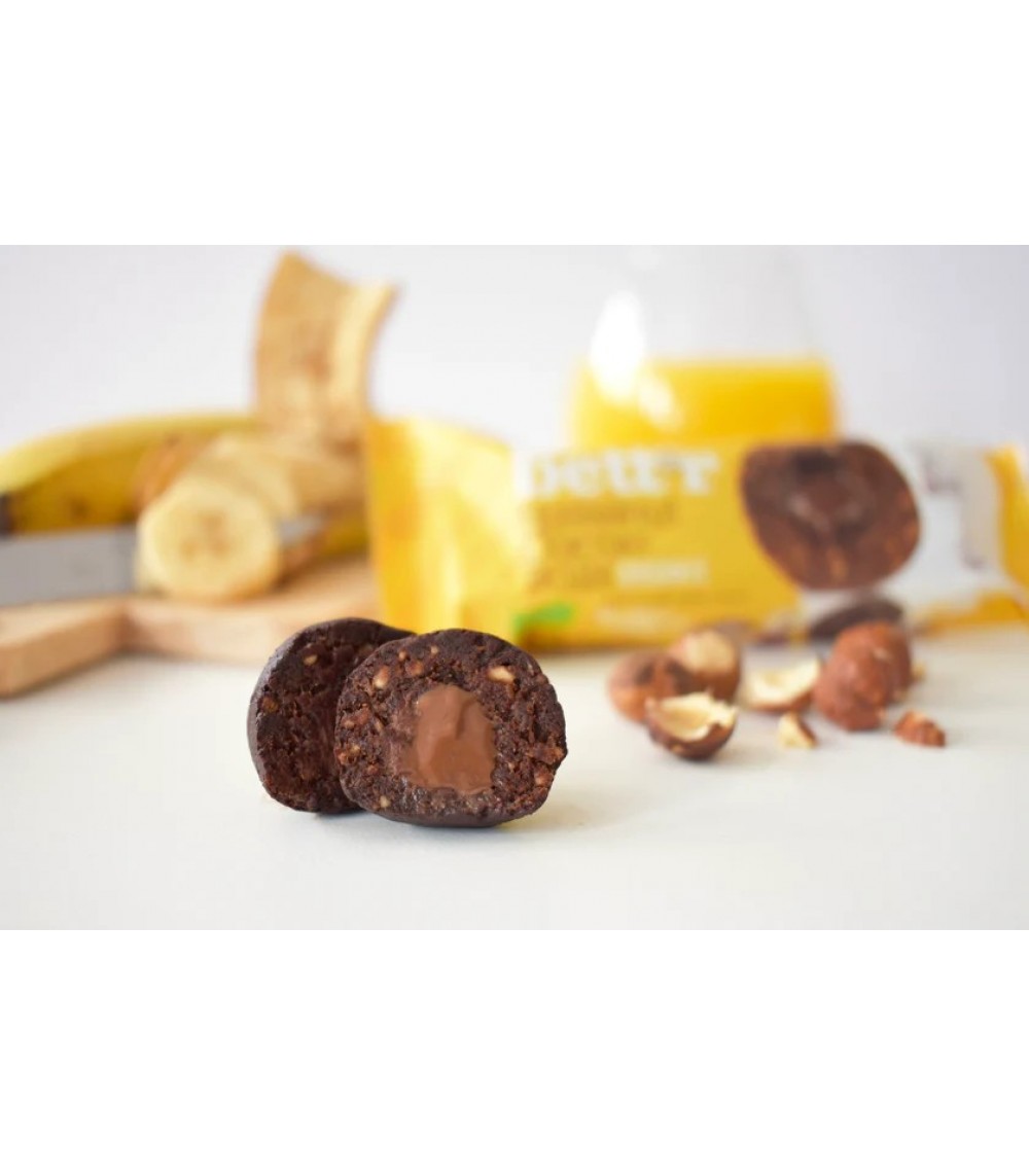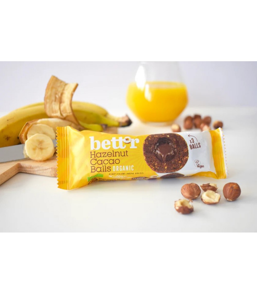 Disse økologiske frugtkugler fra Bett’r kombinerer en saftig skal af dadler med