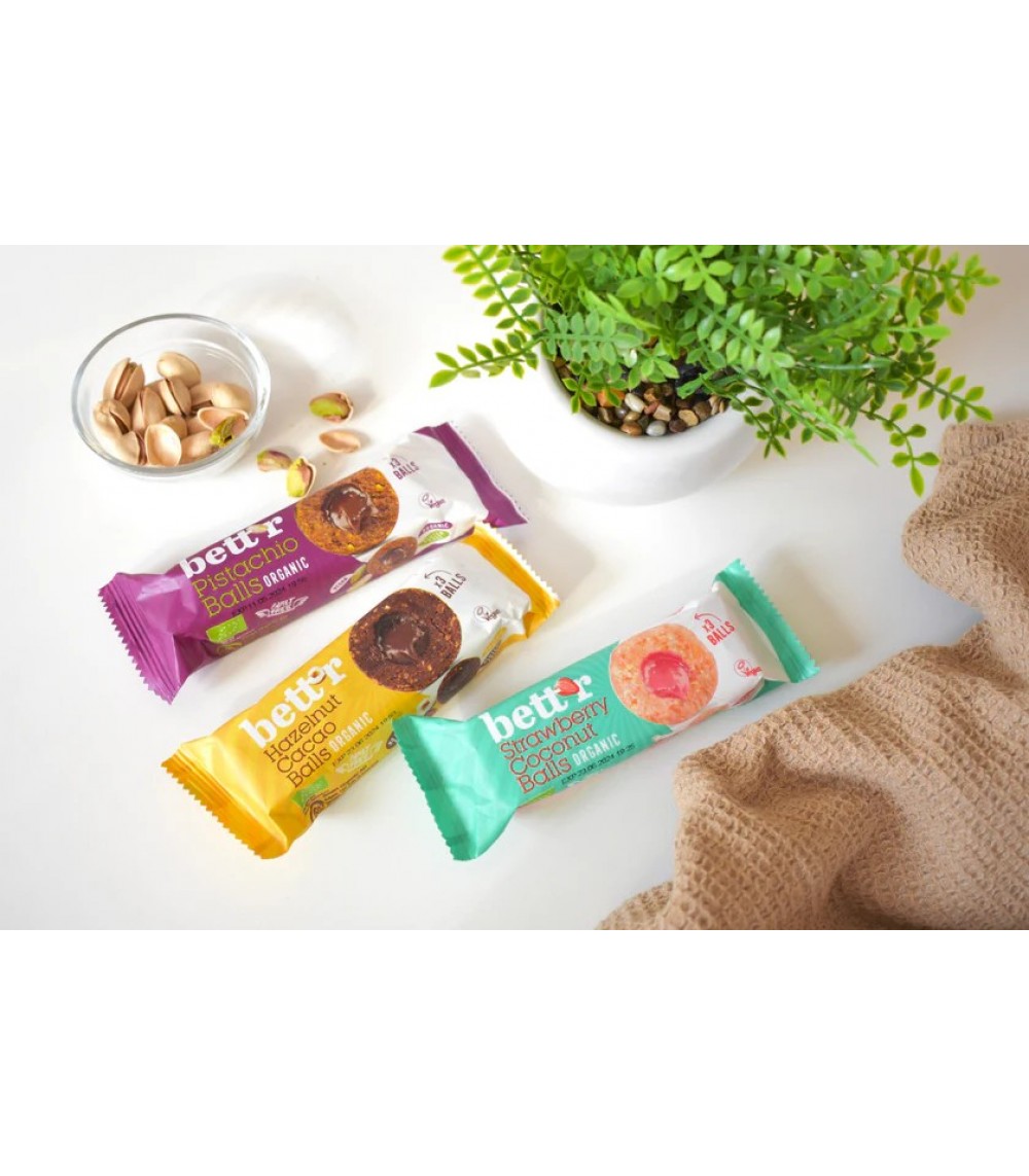 Tre små kugler, fyldt med 64% økologiske dadler og en
