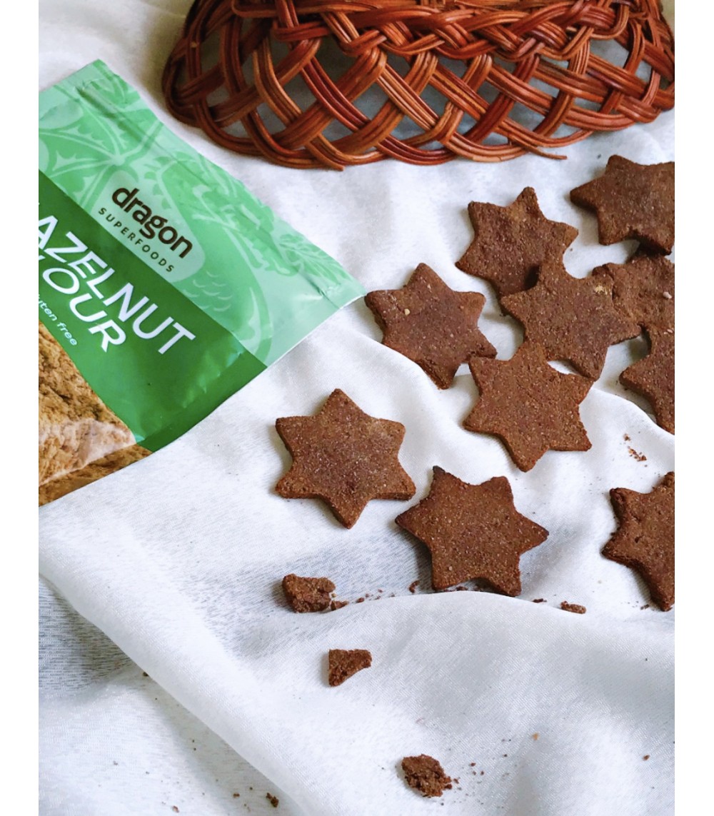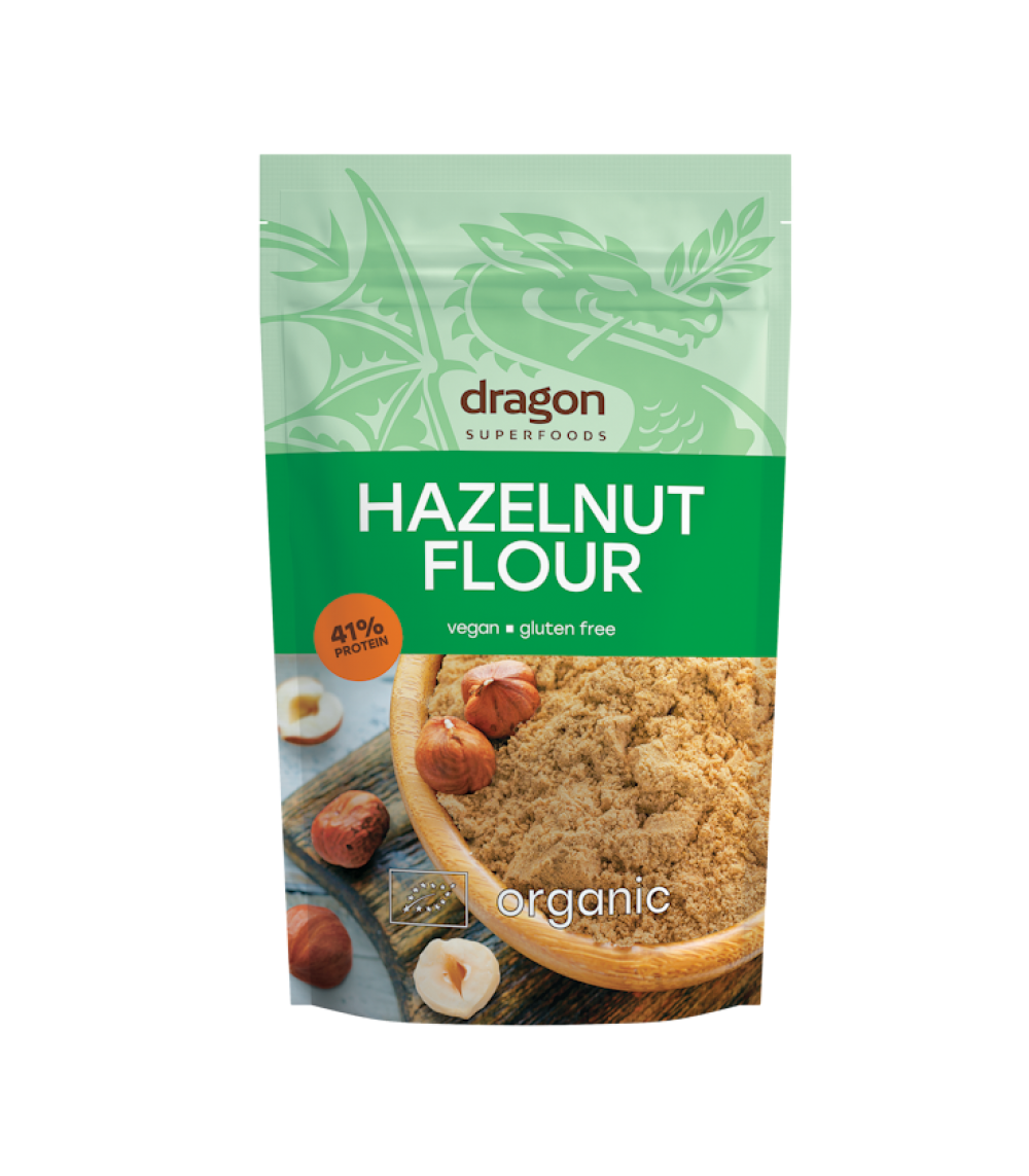 økologiske hasselnødder, malet til fint pulver. Melet er naturligt fri for