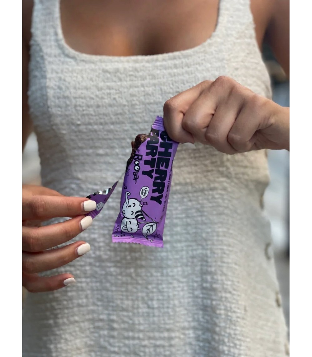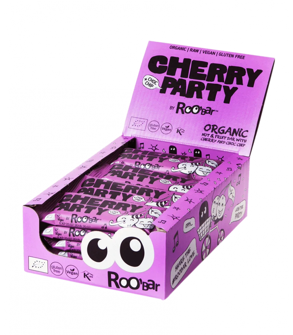 Cherry Party er en økologisk nødde- og frugtbar, hvor en fjerdedel af ingredienserne består af lækre kirsebær. Smagen er en fest for sanserne, idet baren også rummer chokolade i form af chokolade-chips og kakao-smør. Dadler og cashewnødder sørger for den rette og velsmagende bløde konsistens, mens sødmen får et ganske særligt touch med kokosblomst-sukker og kokoschips.